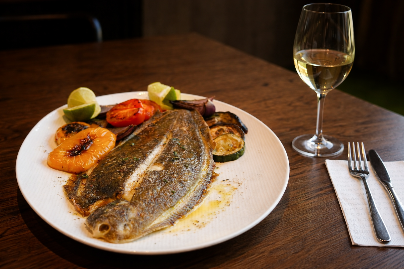 Pokud máte velký hlad, máme pro vás velkou rybu. Vyzkoušejte mořský jazyk připravovaný v celku, podávaný s grilovanou zeleninou, limetou a kapkou prosecca, která celé jídlo krásně podtrhne.